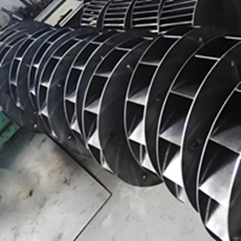 多段式风机结构: 转子:由轴、叶轮、轴承、同步齿轮、联轴器、轴套等组成。